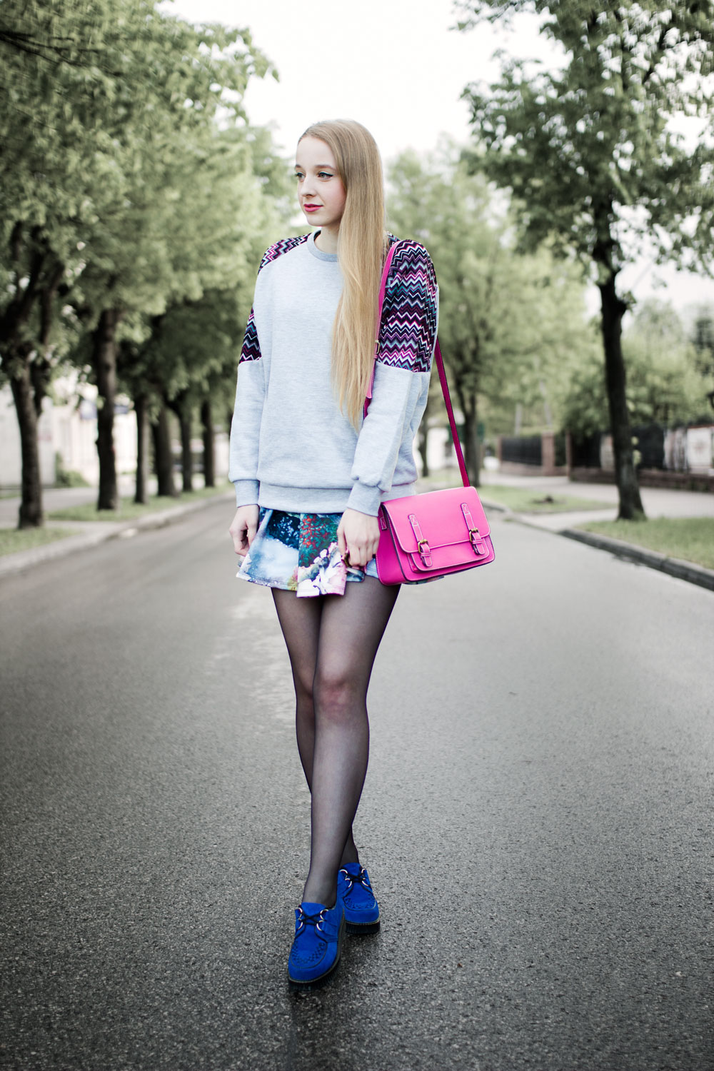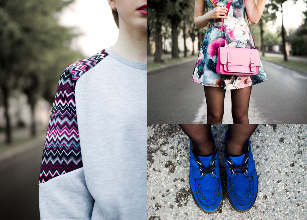 OdpowiedzUsuńMasz rację rzadko kiedy bluza pasuje do sukienki, ale tym przypadku jest inaczej! Kolory są super a ta szarość ładnie wszystko stonuje! I te kobaltowe Cleepersy!!!
